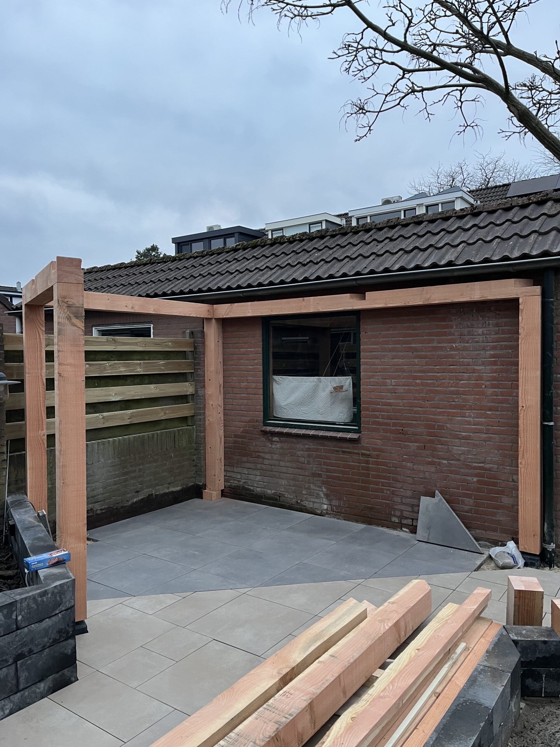 Buitentimmerwerk Pergola In opdracht van Stark tuinen en in samenwerking met Groenendijk GWW-Werk deze Pergola van douglas gemaakt.